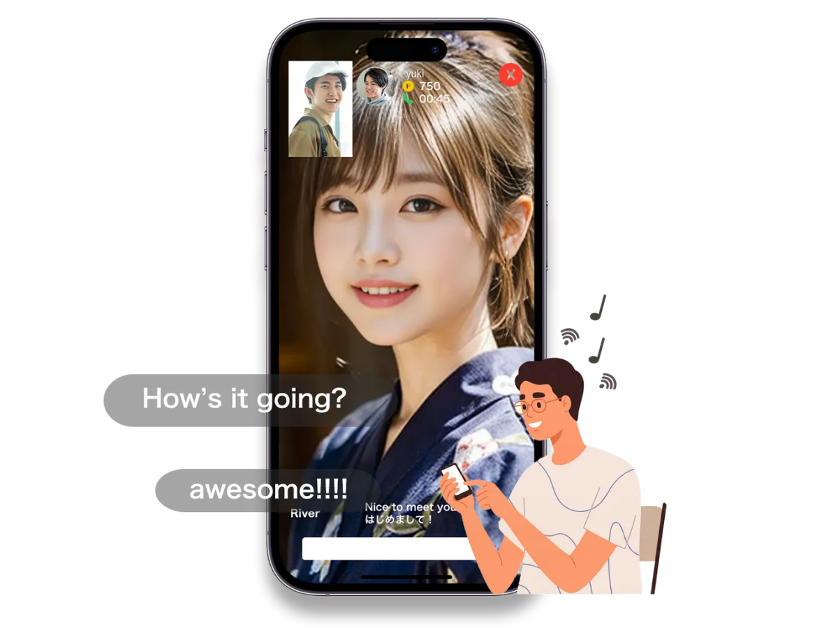 リアルタイム自動翻訳機能を搭載し、言語の壁を感じさせないグローバルコミュニケーションを実現。ビデオ通話・音声通話・チャットの3つの手段で世界中の人とつながることができ、各国の文化やトレンドに最適化したマーケティングで海外市場での成長を続けています。
